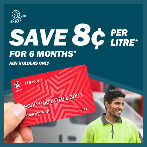 Take advantage of an exclusive 8c per litre discount for the next 6 months when you sign up for a Caltex StarCard. With access to our nationwide network of 500+ Caltex locations, you’ll enjoy convenience, control, and consistent savings every time you fill up.