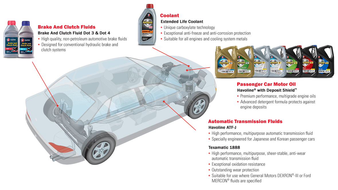 It's important to use the right product for optimal performance. That's why we offer a range for your vehicle’s unique needs. Whether it’s Caltex's Havoline engine oils, brake and clutch fluids, transmission and power steering fluids, or coolants, we’ll help protect your engine and your family wherever you go.