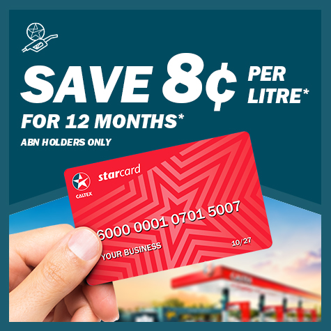 ***Fuel discount excludes LPG and AdBlue, Terms and Conditions apply. Caltex StarCard Terms and Conditions.StarCard FlexTM Terms and Conditions