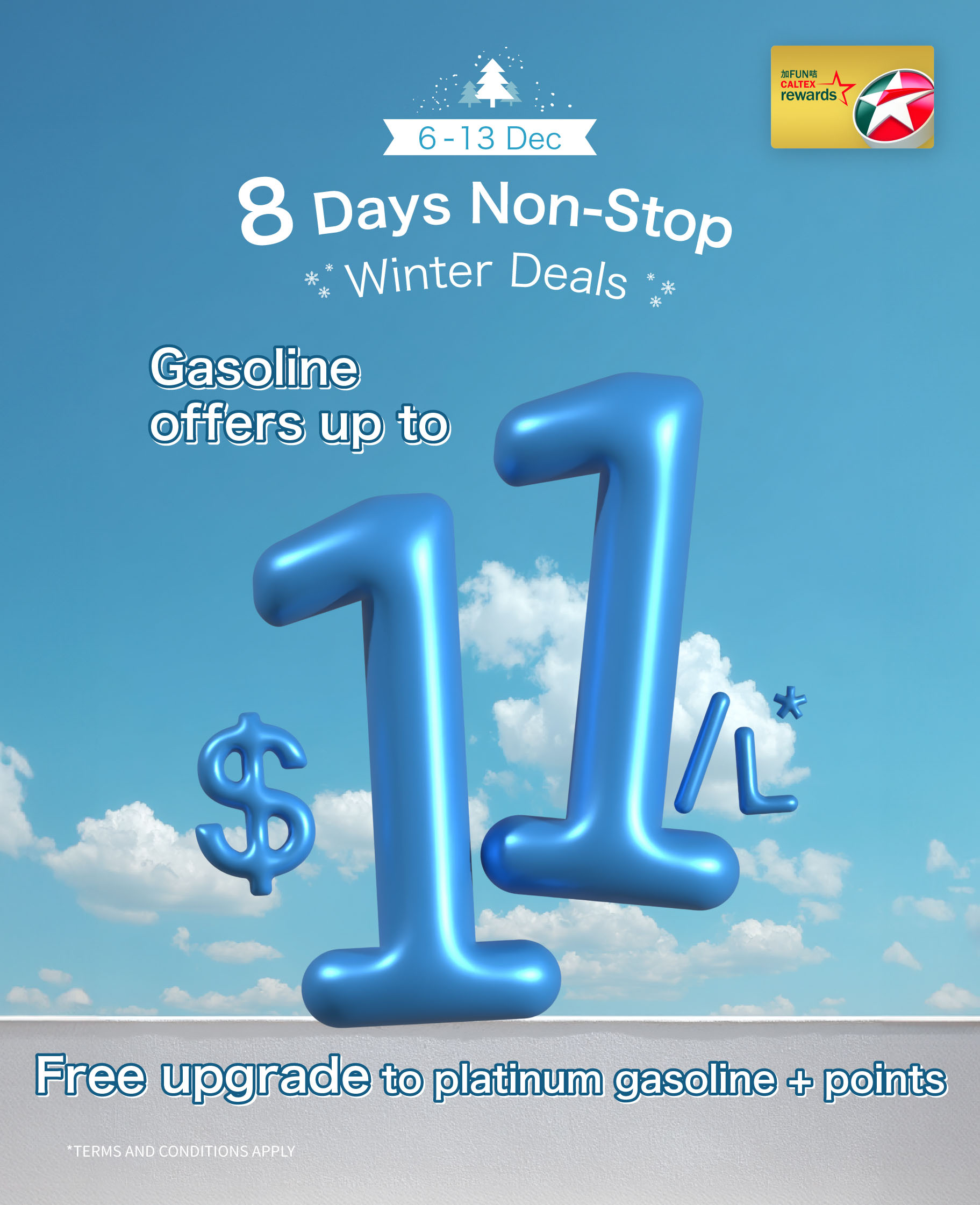 From 6 to 13 December 2025, Caltex Rewards members who fuel up gasoline with the Caltex Rewards Card will enjoy offer up to HK$11/L*.