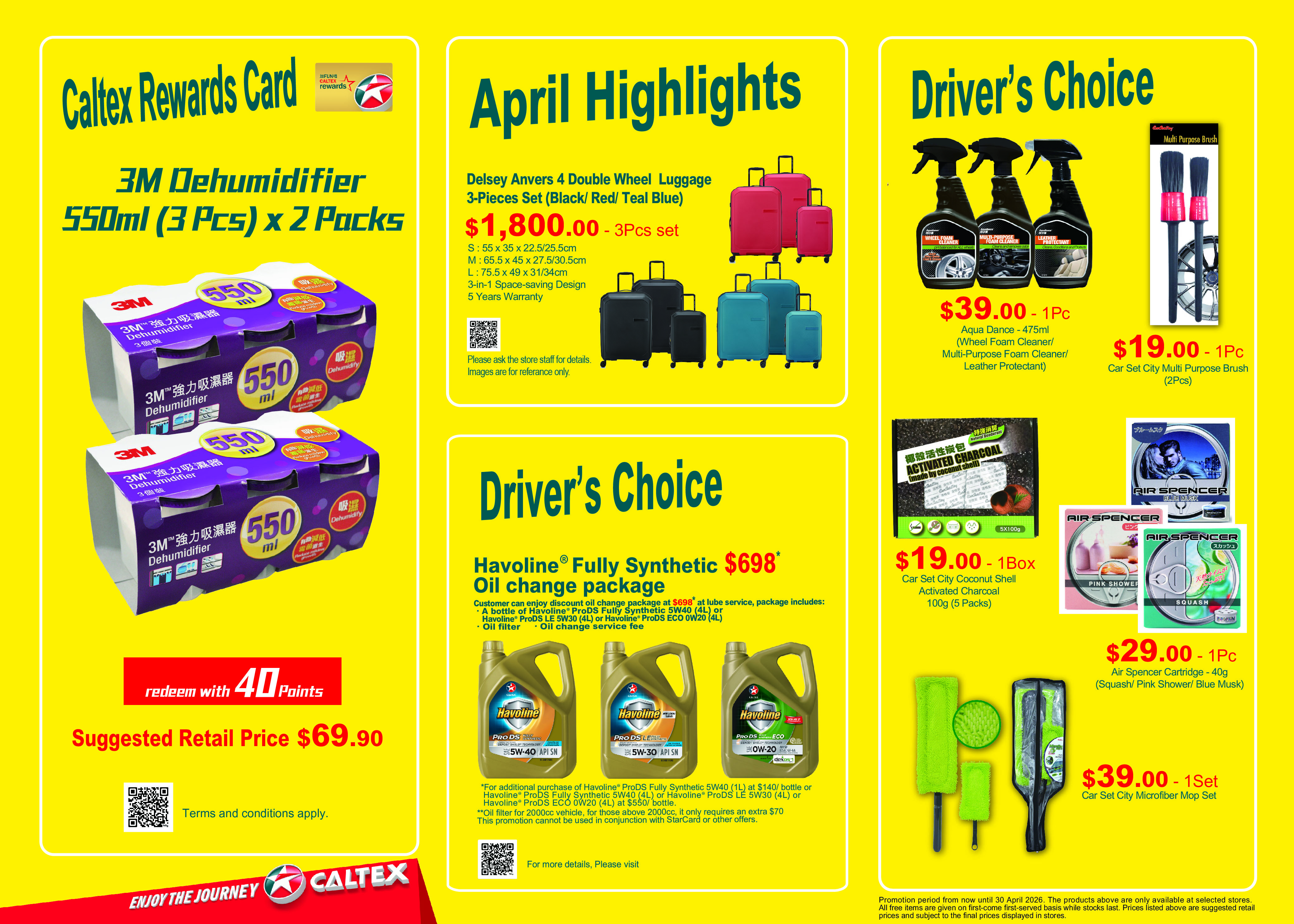 Look out for these promotion items in April at our Star Mart when you visit any Caltex stations.