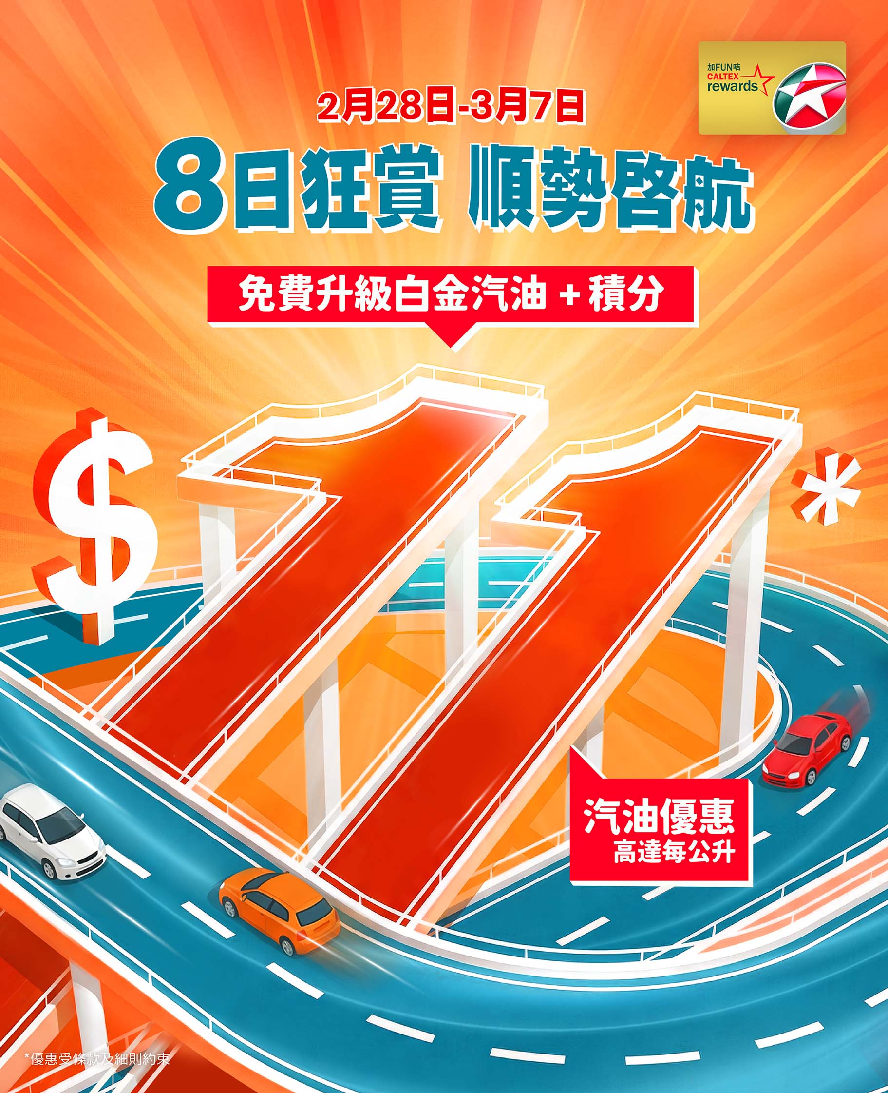 由2026年2月28至3月7日,加FUN咭會員憑咭入汽油可享高達每公升HK$11* 優惠。