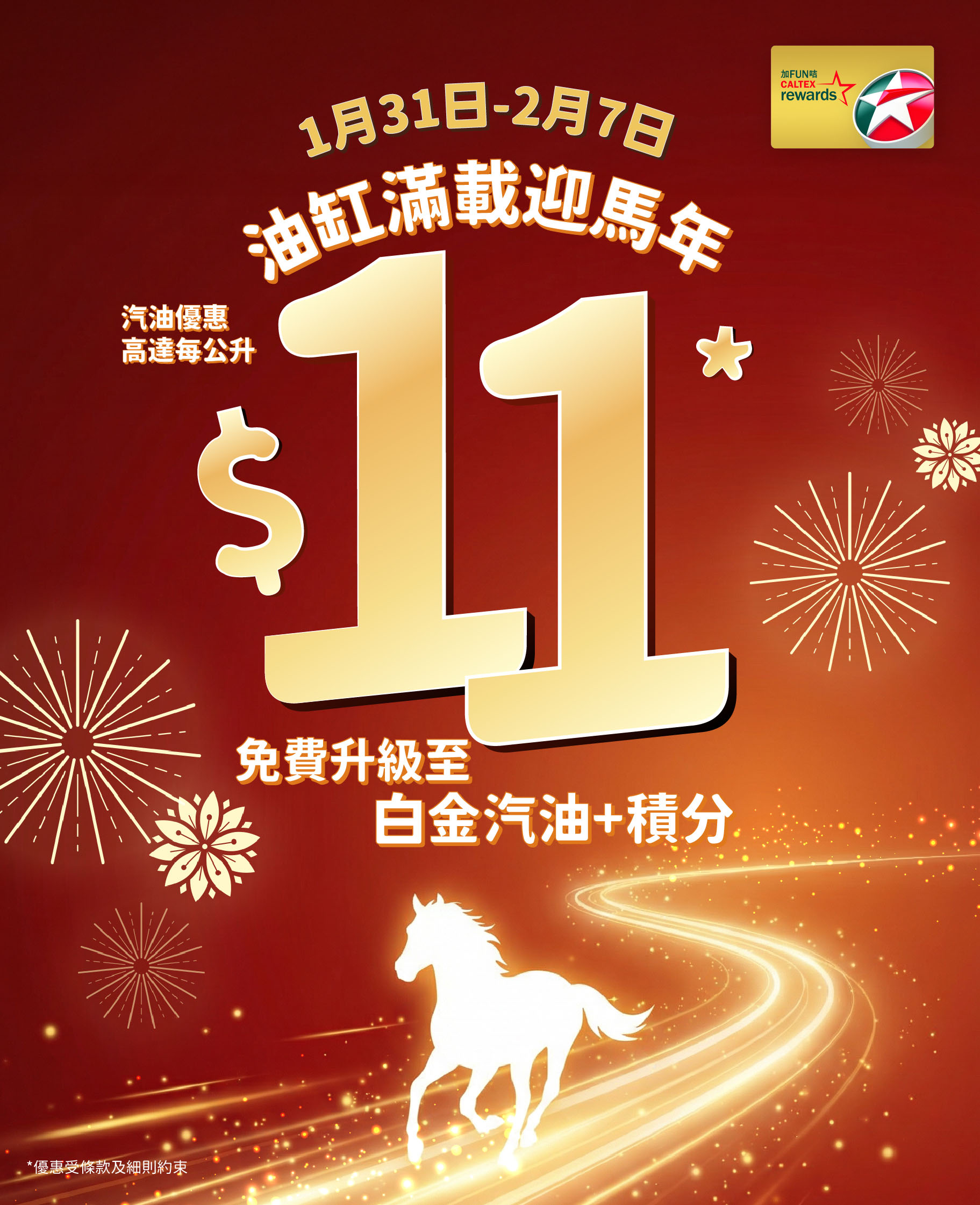 由2026年1月31至2月7日,加FUN咭會員憑咭入汽油可享高達每公升HK$11* 優惠。