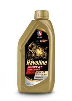 Havoline® Super 4T Fully Synthetic SAE 5W-40 is a premium fully synthetic oil with Havoline C.O.R.E.+ Technology, specially formulated to suit the demanding needs of high-performance motorcycles in all city riding conditions.
