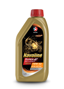 Havoline® Super 4T Semi-Synthetic SAE 10W-40 is a high quality semi-synthetic oil with Havoline C.O.R.E.+ Technology, proven in the streets for urban riders who demand a strong and reliable oil for their trusted motorcycles.