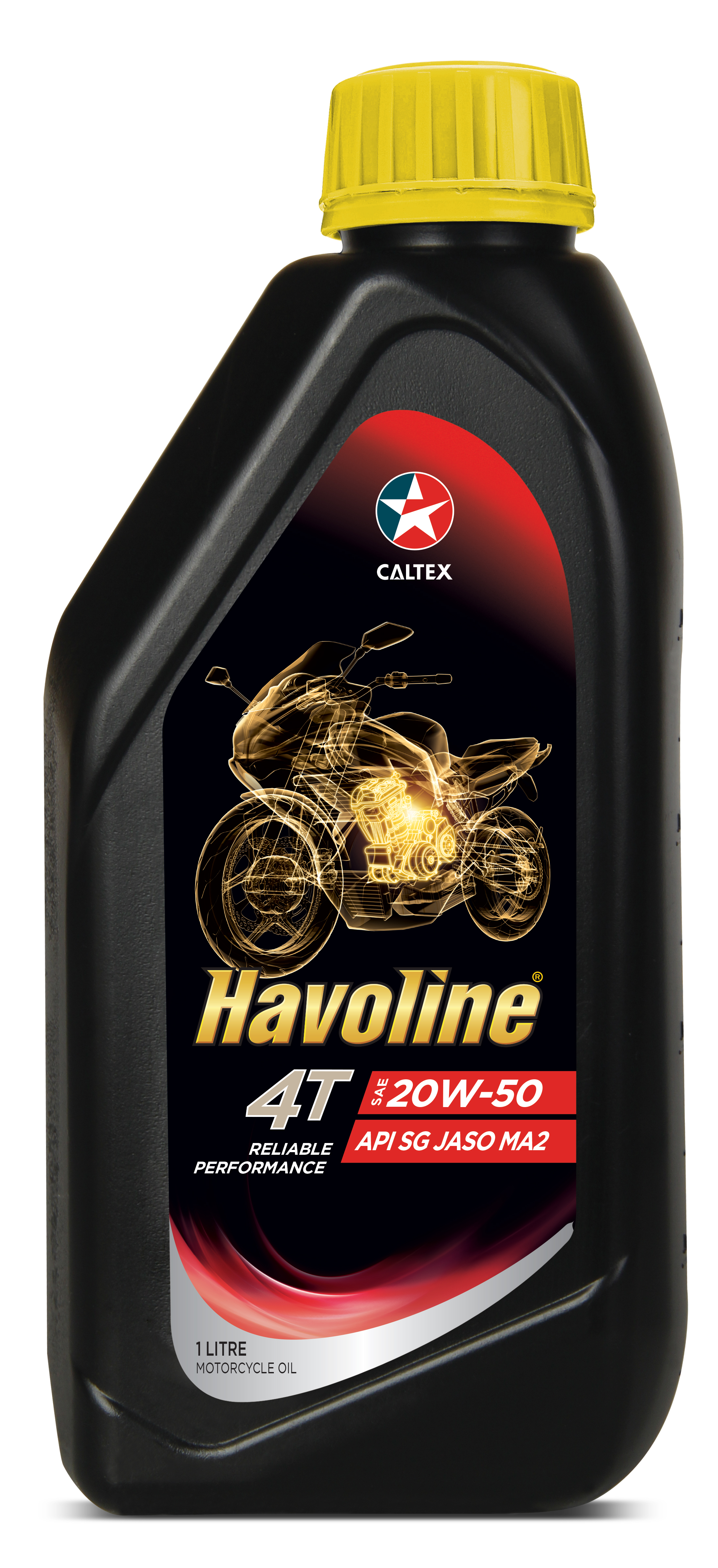 Havoline® 4T High quality, shear stable, multi-grade, multifunctional fluid specifically designed for use in four-stroke motorcycle engines, clutches and gearboxes, and portable power equipment engines requiring JASO MA2, API SG lubricants.