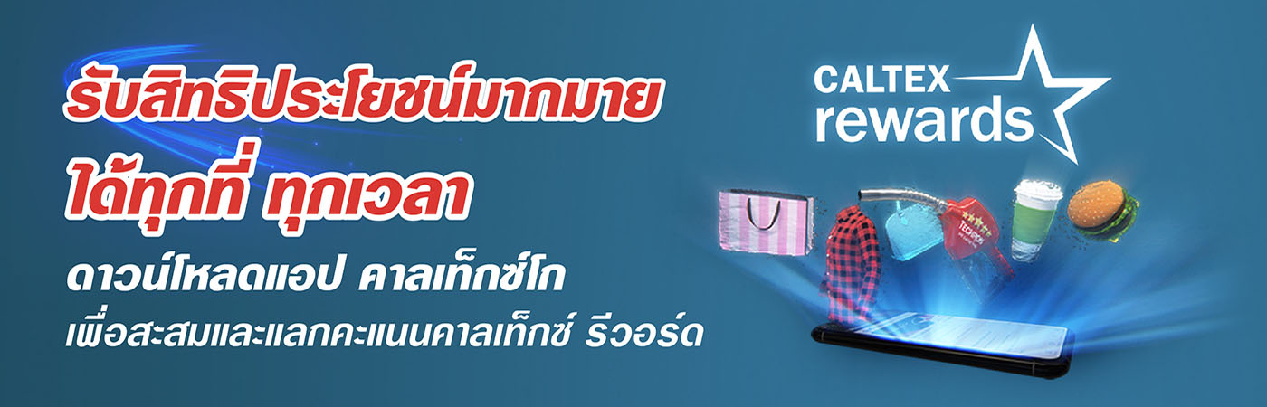 เปลี่ยนการเดินทางแต่ละครั้งของคุณให้เป็นของรางวัลที่คุ้มค่าด้วยคาลเท็กซ์ รีวอร์ด เพียงลงทะเบียนผ่านแอปพลิเคชัน CaltexGO ผ่านเว็บไซต์หรือที่สถานีบริการน้ำมันคาลเท็กซ์ และเติมน้ำมันเพื่อสะสมคะแนน โดยเลือกได้ว่าจะสะสมคะแนนจากคาลเท็กซ์ รีวอร์ดหรือรายการสะสมคะแนนอื่นที่ร่วมรายการ รวมทั้งแลกคะแนนรับส่วนลดน้ำมัน หรือบัตรกำนัลในแบบที่คุณชื่นชอบ