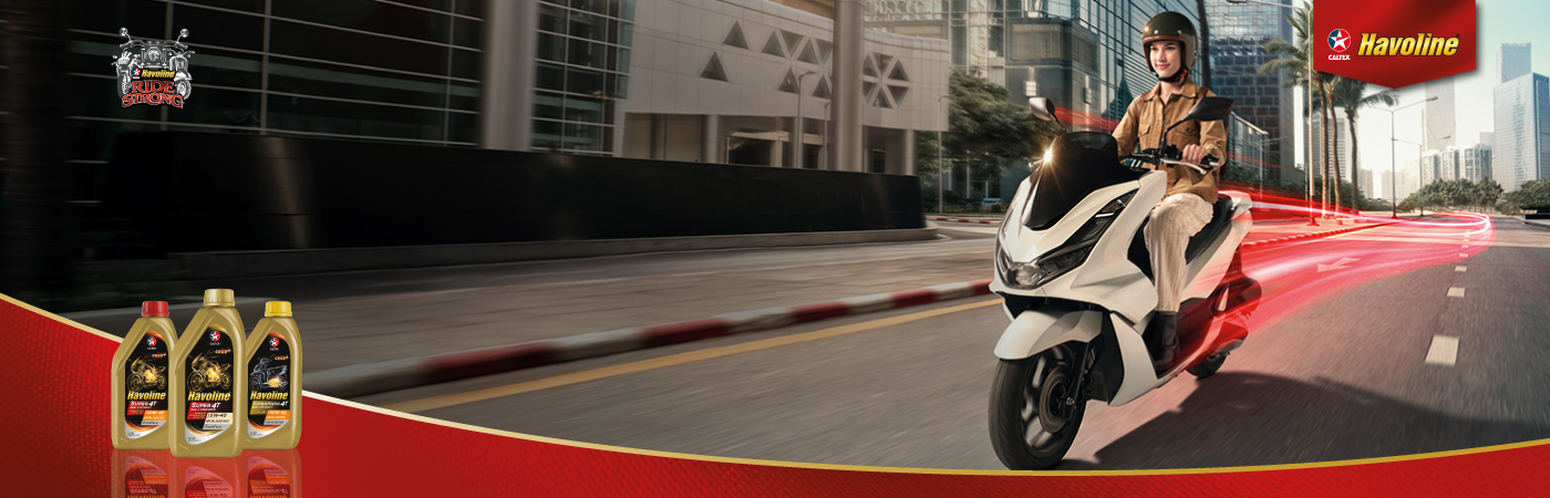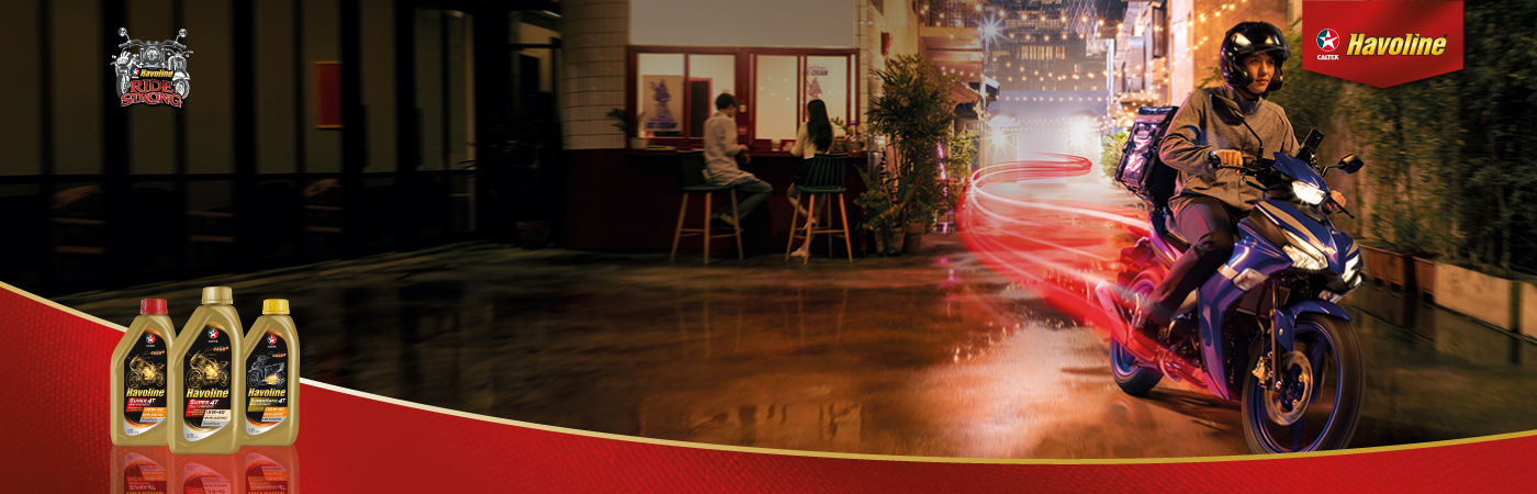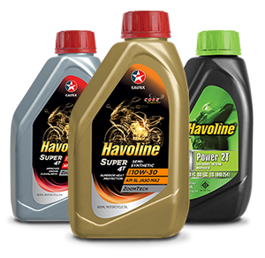 น้ำมันเครื่องคาลเท็กซ์ ฮาโวลีน® บิดแรง พร้อมลุยไปกับคุณทุกวัน ตอบสนองทุกคำสั่ง ให้รถจักรยานยนต์และสกู๊ตเตอร์ของคุณ ขับขี่ต่อเนื่องยาวนาน ด้วยประสิทธิภาพที่เหนือกว่า