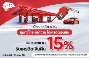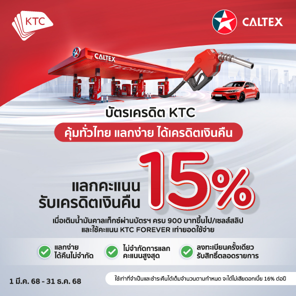 1) รายการส่งเสริมการขาย (“รายการ”) นี้ บริษัท บัตรกรุงไทย จำกัด (มหาชน) หรือ เคทีซี จัดทำขึ้นเพื่อมอบสิทธิประโยชน์ให้แก่สมาชิกบัตรเครดิต KTC (“สมาชิก”) ที่มีคะแนน KTC FOREVER (“คะแนน”) และใช้จ่ายผ่านบัตรฯ ณ สถานีบริการน้ำมันคาลเท็กซ์ ที่ร่วมรายการ ในช่วงระหว่างวันที่ 1 มี.ค. 68 - 31 ธ.ค. 68 (“ระยะเวลารายการ”) ตามเงื่อนไขที่กำหนดเท่านั้น